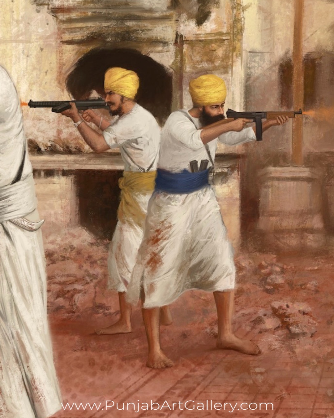 The canvas print of this artwork will be shipped rolled in a shipping tube. – ਸੰਤ ਜੀ ਤੇ ਸ਼ਹਾਦਤ – Sant ji and Shahadat by Parm Singh Painting